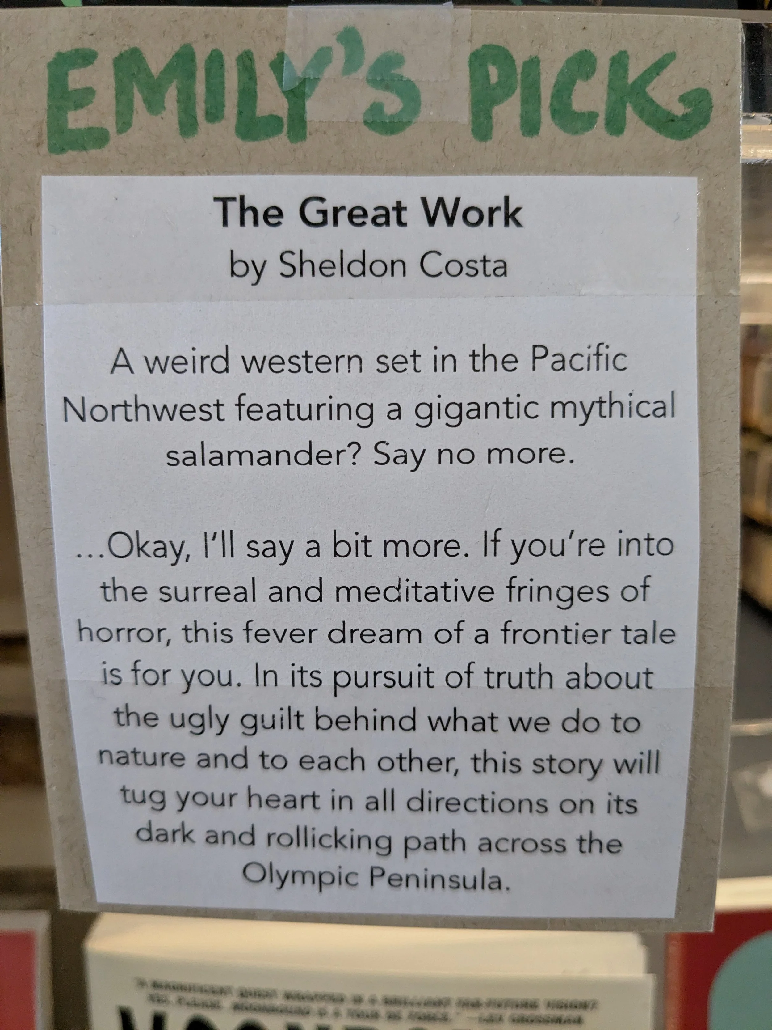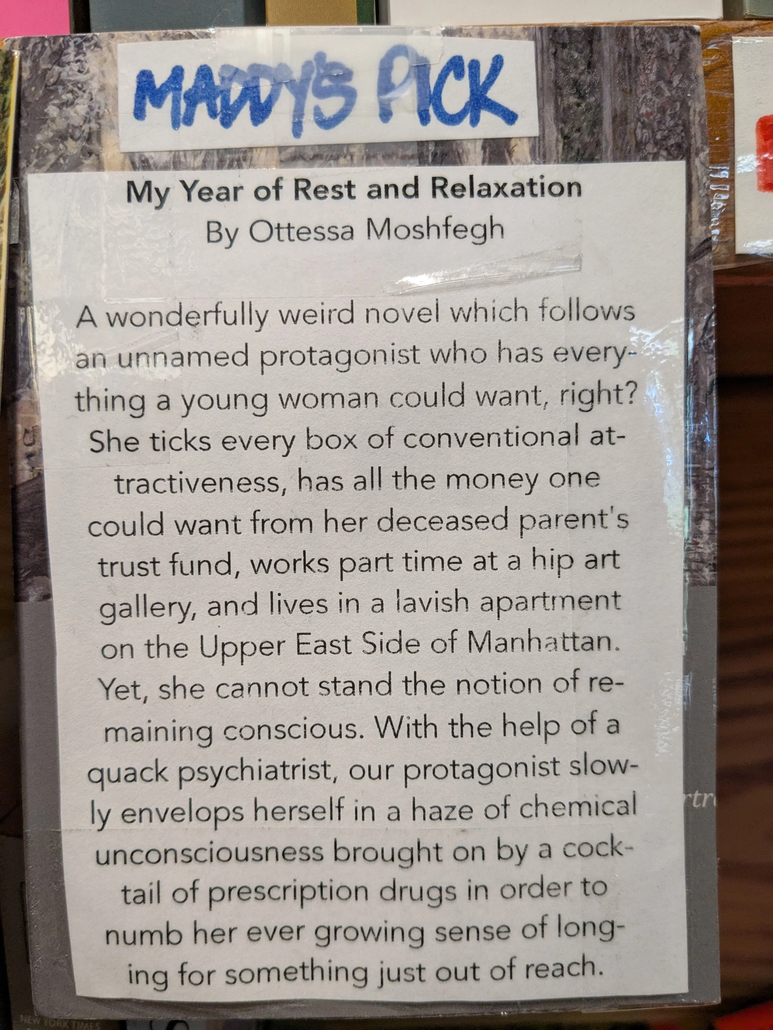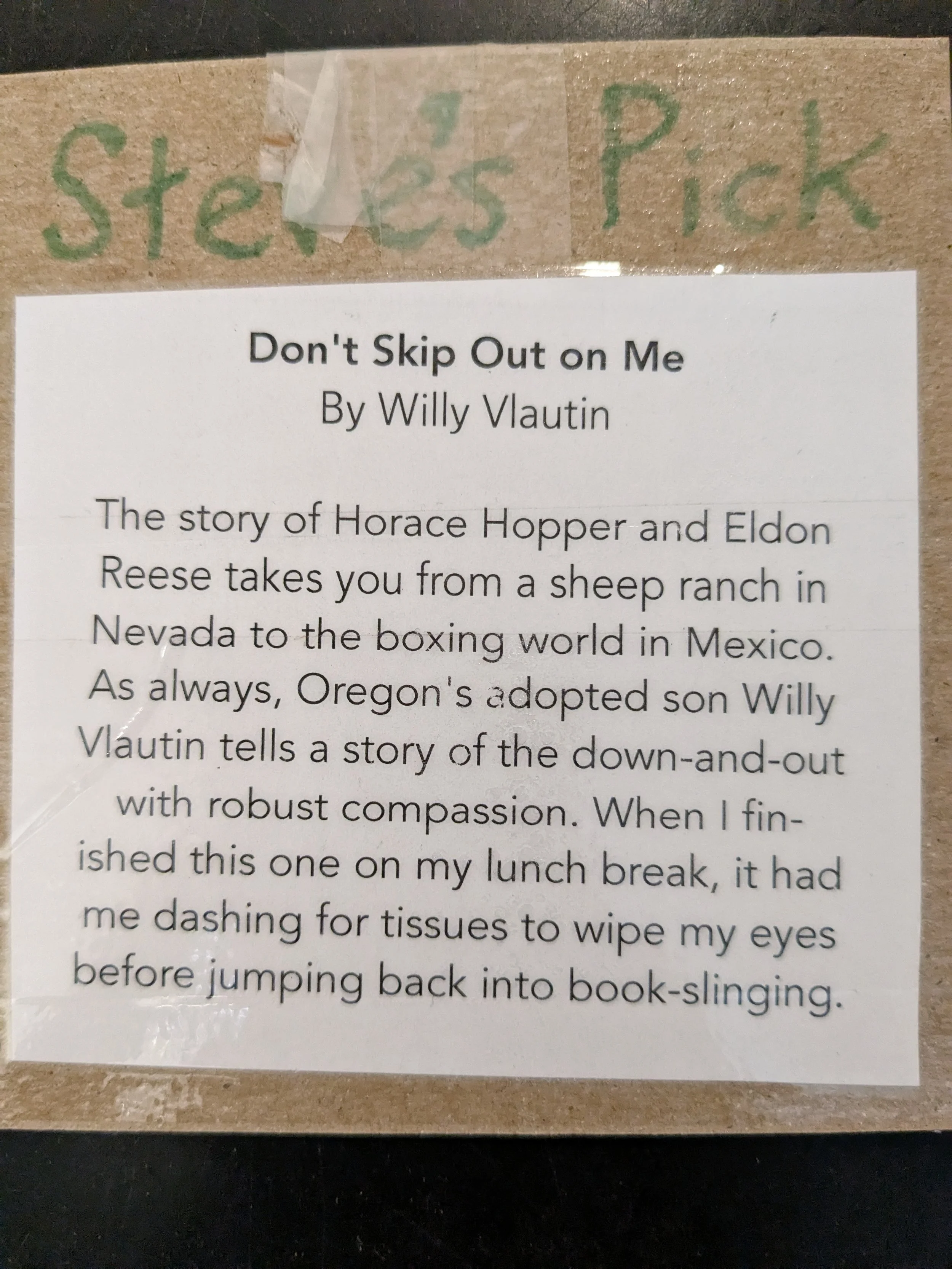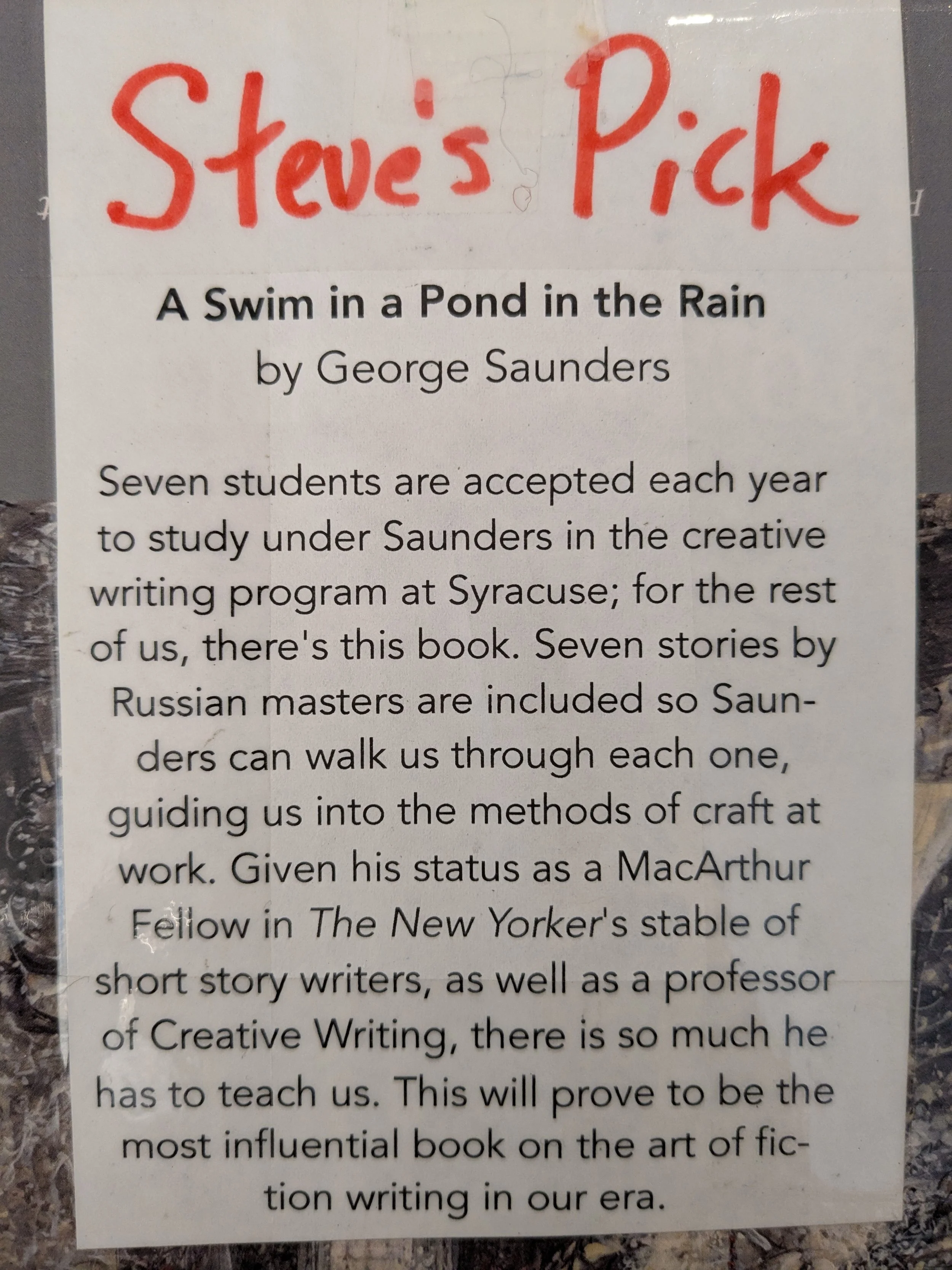 Here we have pictures of all of the staff recommendations (past and present) that we have written and put up in the store over the years. It’s sorted alphabetically by title. To enlarge a specific recommendation, just give its picture a click.