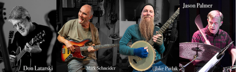 Rather than assembling a band to make this dream a reality, Latarski decided to have a go at it himself. Through the magic of overdubbing, judicious use of loops, and a great bassist (Mark Schneider), he was able to bring some of the classic funk tunes of the 70s to life in a new guise. At the Tsunami Books concert, he will be joined by long-time bandmates Jason Palmer (percussion), Mark Schneider (bass), and recent addition Jake Pavlak (guitar, banjitar, and soprano guitar).