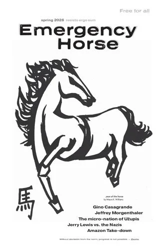 The relaunch of the magazine happened this past September. Emergency Horse #8 featured an interview of Robert Hunter, an article about China’s complicity in the fetanyl scourge, and another about an artist’s retreat being created on Ken Kesey’s farm. There was an examination of the importance of diversity in society, and a story about Leprechauns in space.