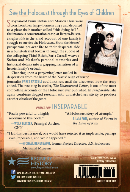 Saturday, October 21, 2-4 PM: Faris Cassell, author of “Inseparable: The Hess Twins' Holocaust Journey Through Bergen-Belsen to America.” Meet and Greet, Book Talk, Reading, Signing. Light refreshments.